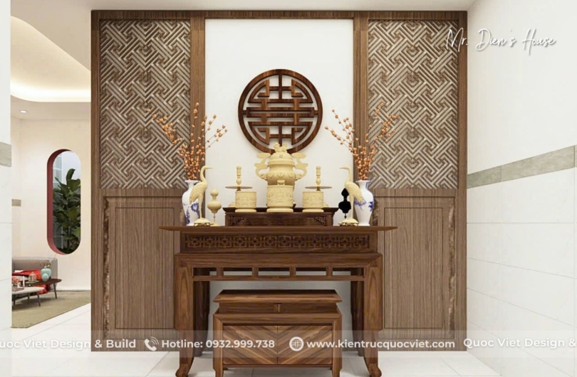 - Công năng: 1 phòng thờ, 1 khách, 1 bếp, 3 phòng ngủ, 1 kho, 2 WC